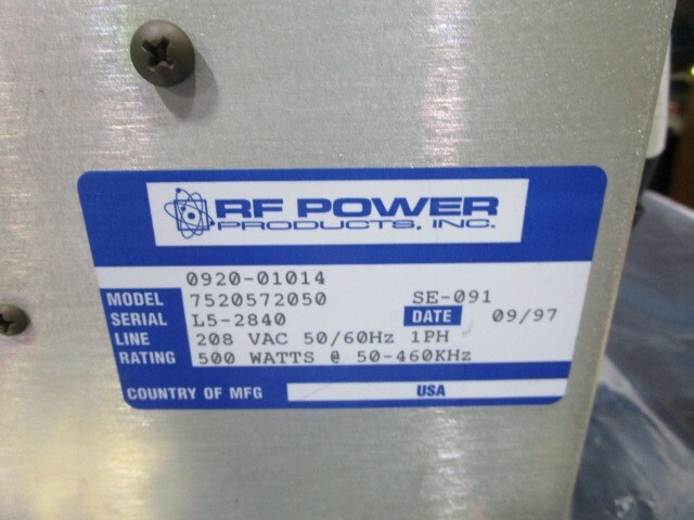 AMAT 0920-01014 RFPP LF-5 RF GEN 7520572050 208 VAC 50/60Hz 1PH, 500 WATTS 50-460KHz