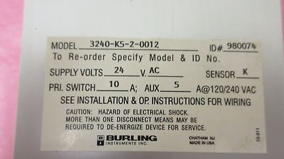 BURLING 3240-K5-2-0012 SUPPLY VOLTS 24 V AC TYPE K 10-644 MODEL 82T 402790