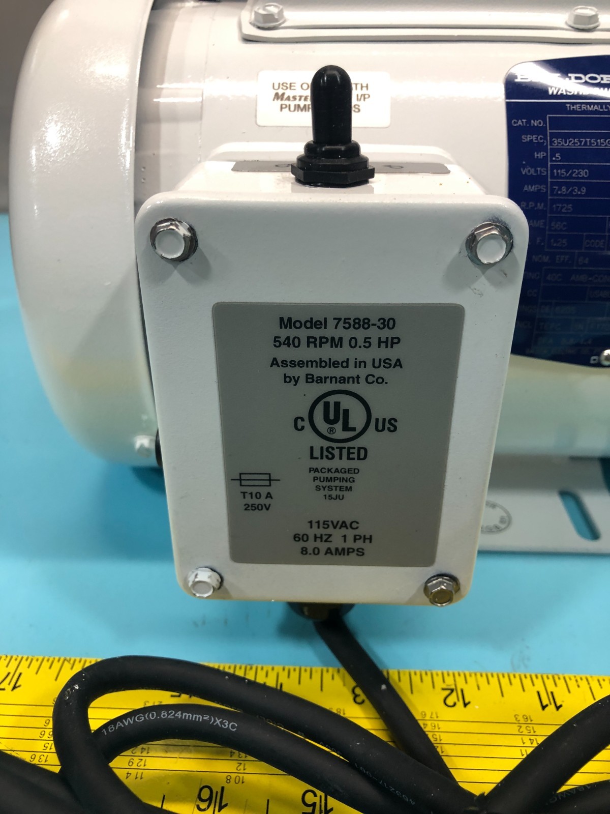 Cole-Parmer 07588-30 Masterflex I/P Wash-Down Drive, EW-07588-30, Baldor Reliance 35U257T515G1 Washdown Duty Motor, 115V, 60Hz,