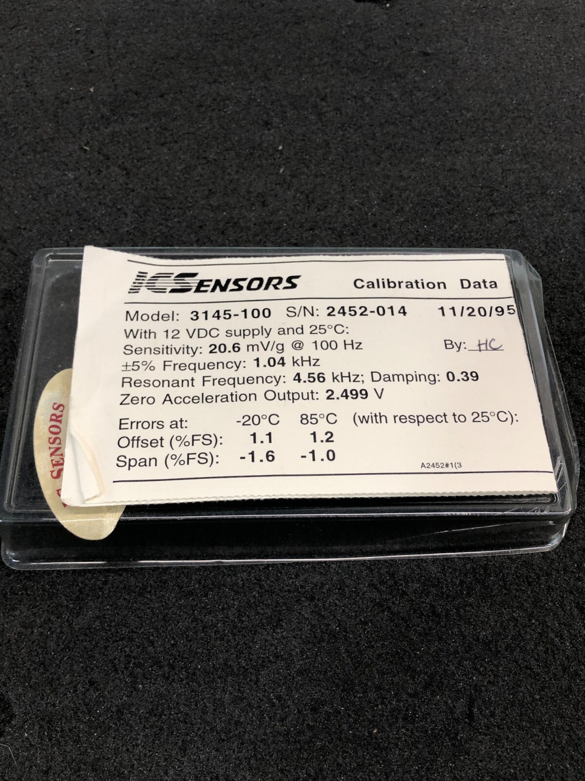 ICSENSORS 3145-100 Sensor Cable Assy w/ Calibration Data Sheet