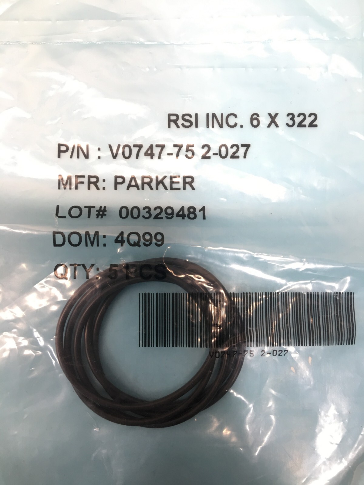 LOT OF 5 PARKER V0747-75 O-RING 2-027