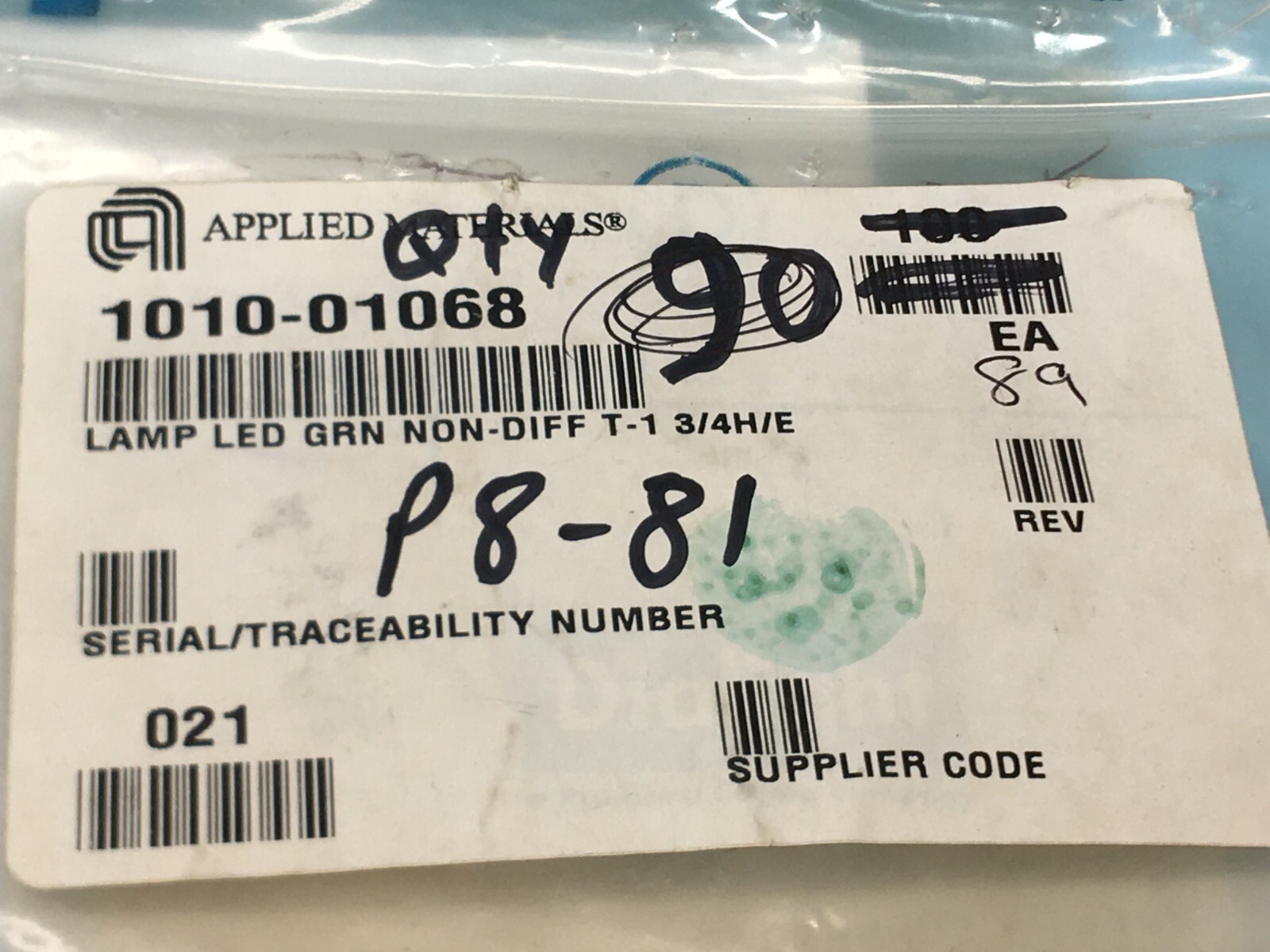 Lot of 89 AMAT 1010-01068 LAMP LED GRN NON-DIFF T-1 3/4H/E