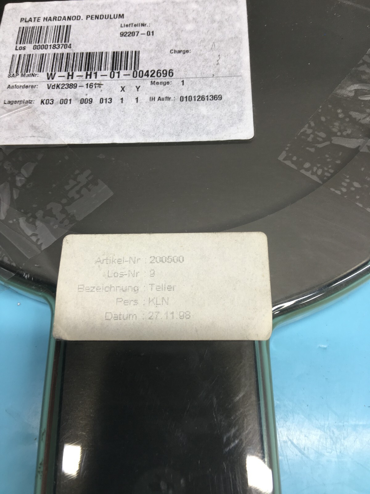 VAT 92207-01 Plate Hardanod Pendulum, Hard Anodized,